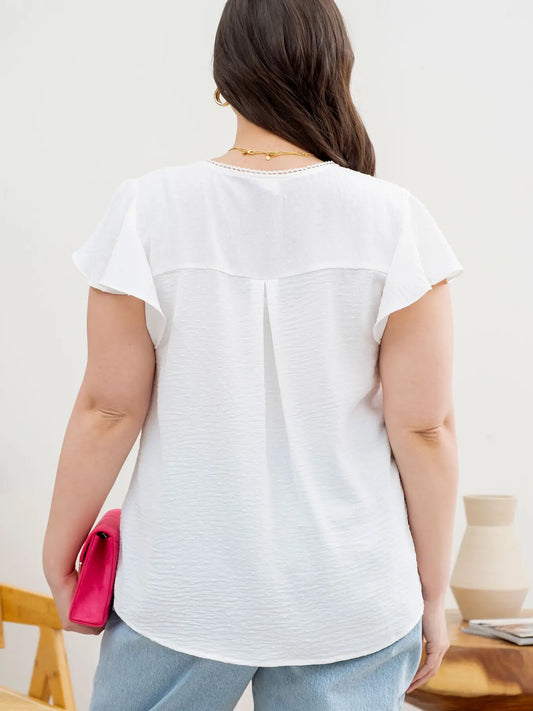 Plus Lace Edge Split Neckline Woven Top