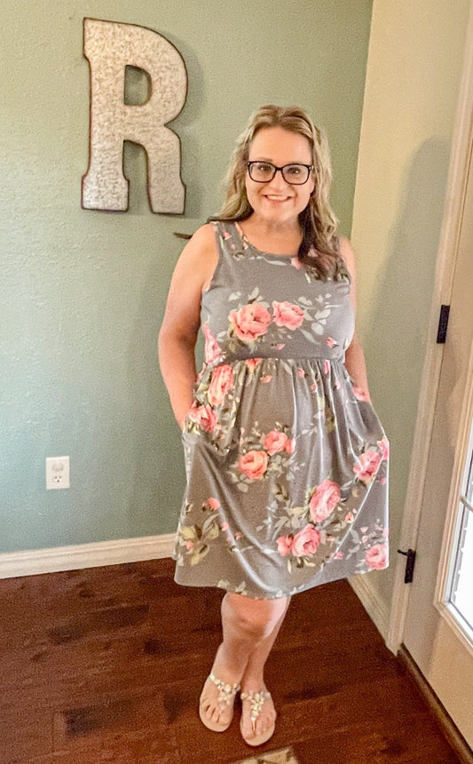 Soft Grey Floral Tank Dress