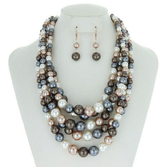 Chunky 5 Strand Pearl Necklace & Earring Set