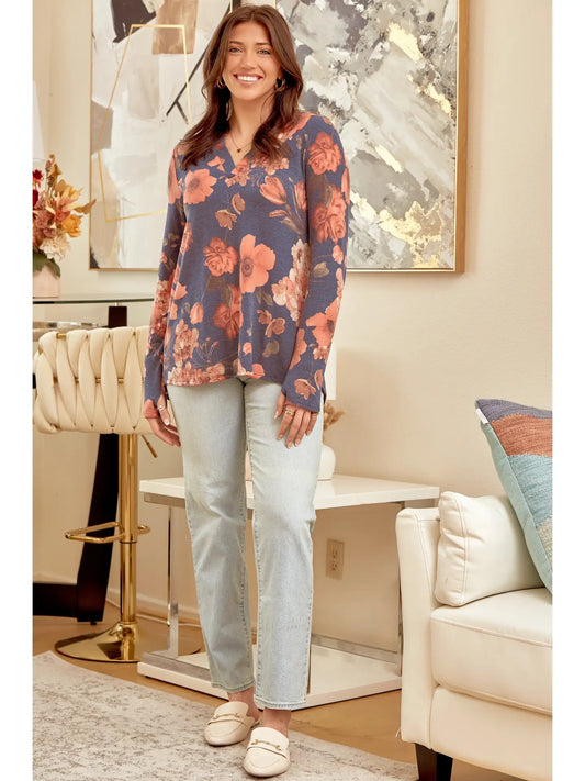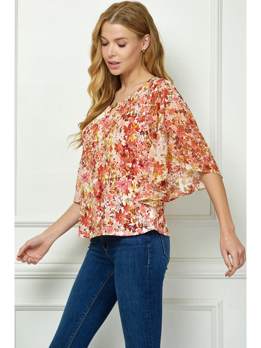 Floral Printed 3/4 Bat Wing Sleeve Blouse