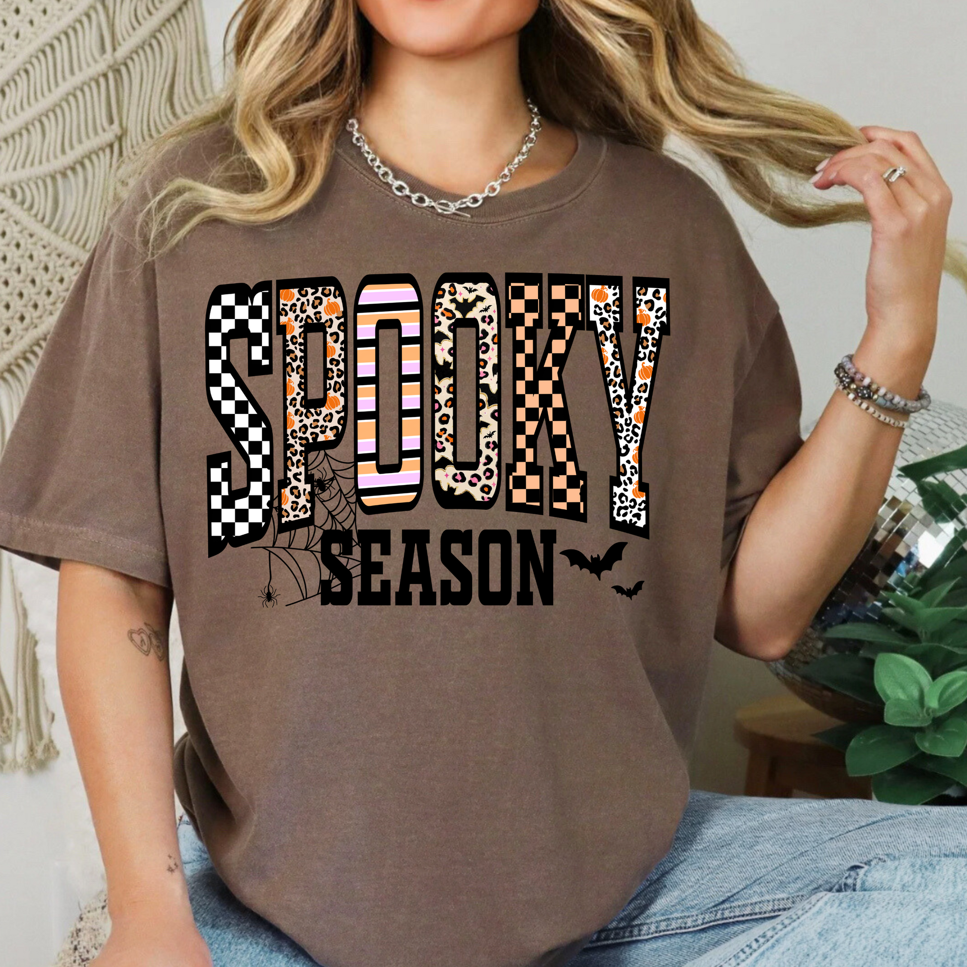 Celebrate your love for all things Halloween with this bold and festive Spooky Season Tee! Printed on a premium Comfort Colors tee in Espresso, this shirt brings all the cozy fall vibes with a trendy twist.
